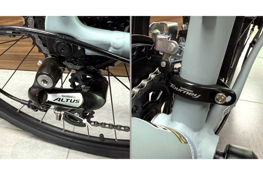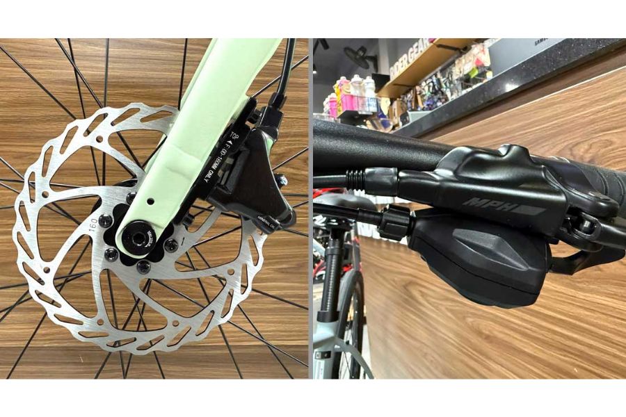 Bộ truyền động Shimano 2×8 tốc độ kết hợp tay đề MPH cho khả năng sang số mượt mà, nhanh chóng và chính xác.